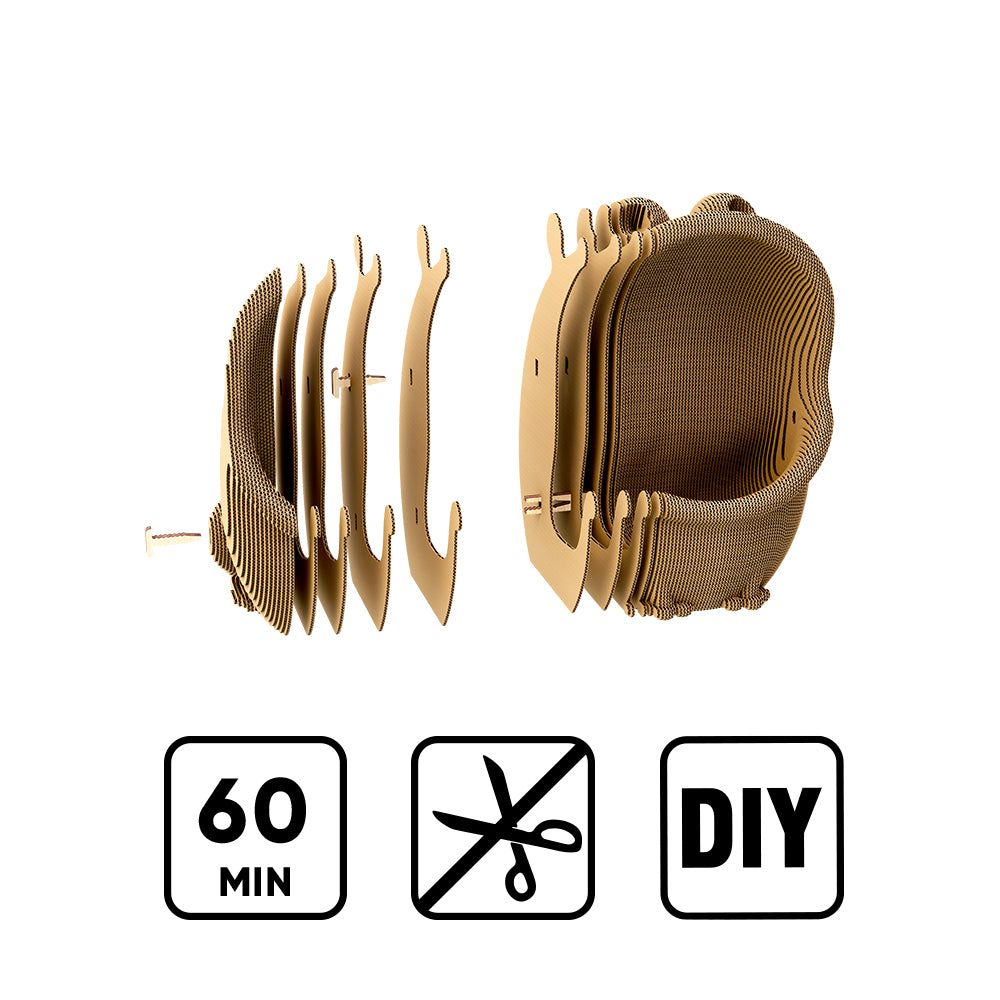 FROGGY — an original frog among our 3D puzzles, ready to find a place in your home or office. Its wide-open mouth isn’t just for show — inside there’s space for small items it will gladly "guard". Assemble this puzzle and create your own playful little guardian. Paint it any way you like* or leave it in its natural kraft look.